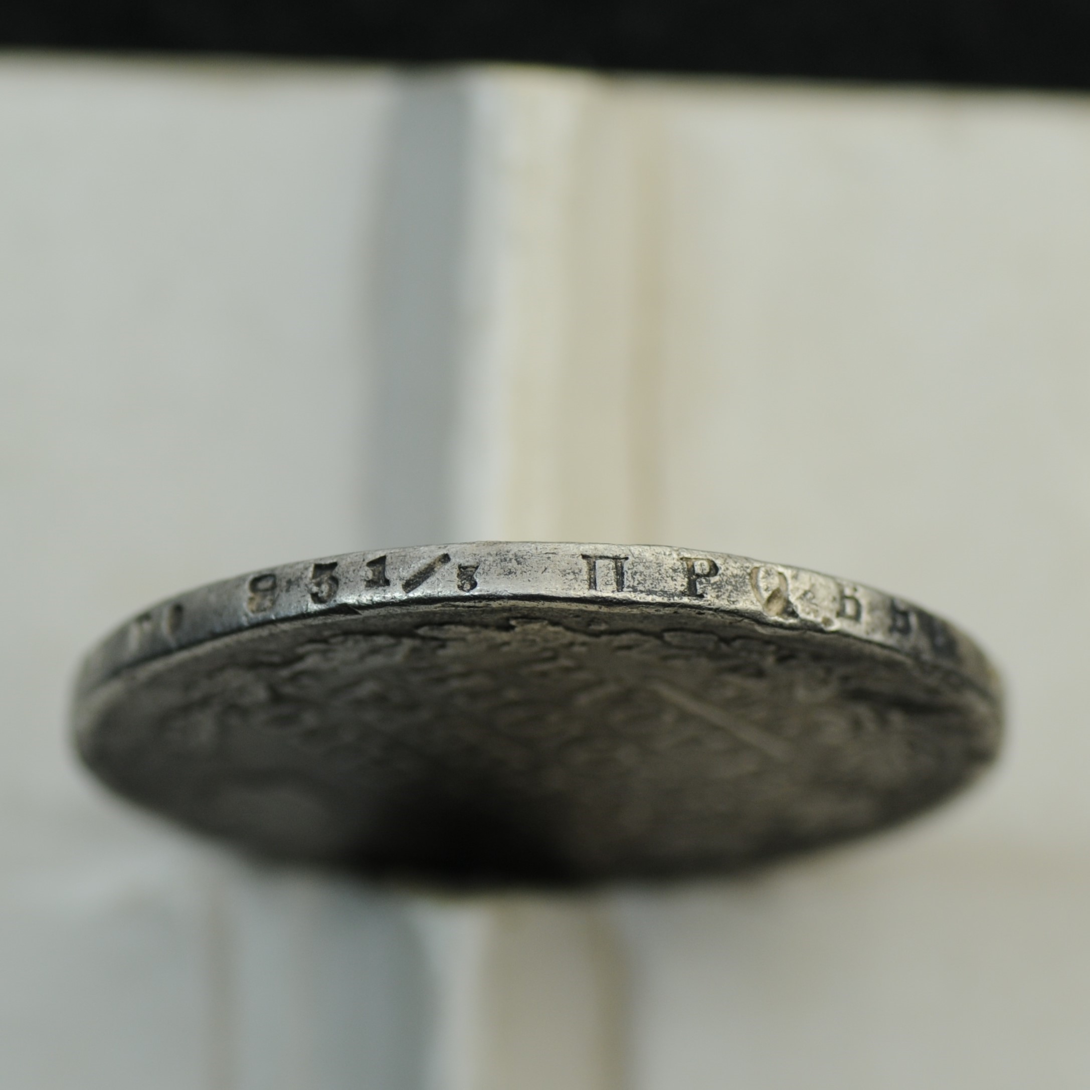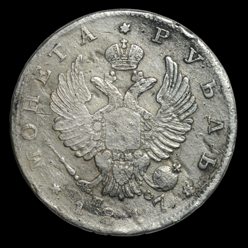 Монета Российской Империи 1 рубль 1817 года. Отчеканена из серебра 868-й пробы на Санкт-Петербургском монетном дворе в период царствования императора Александра I.