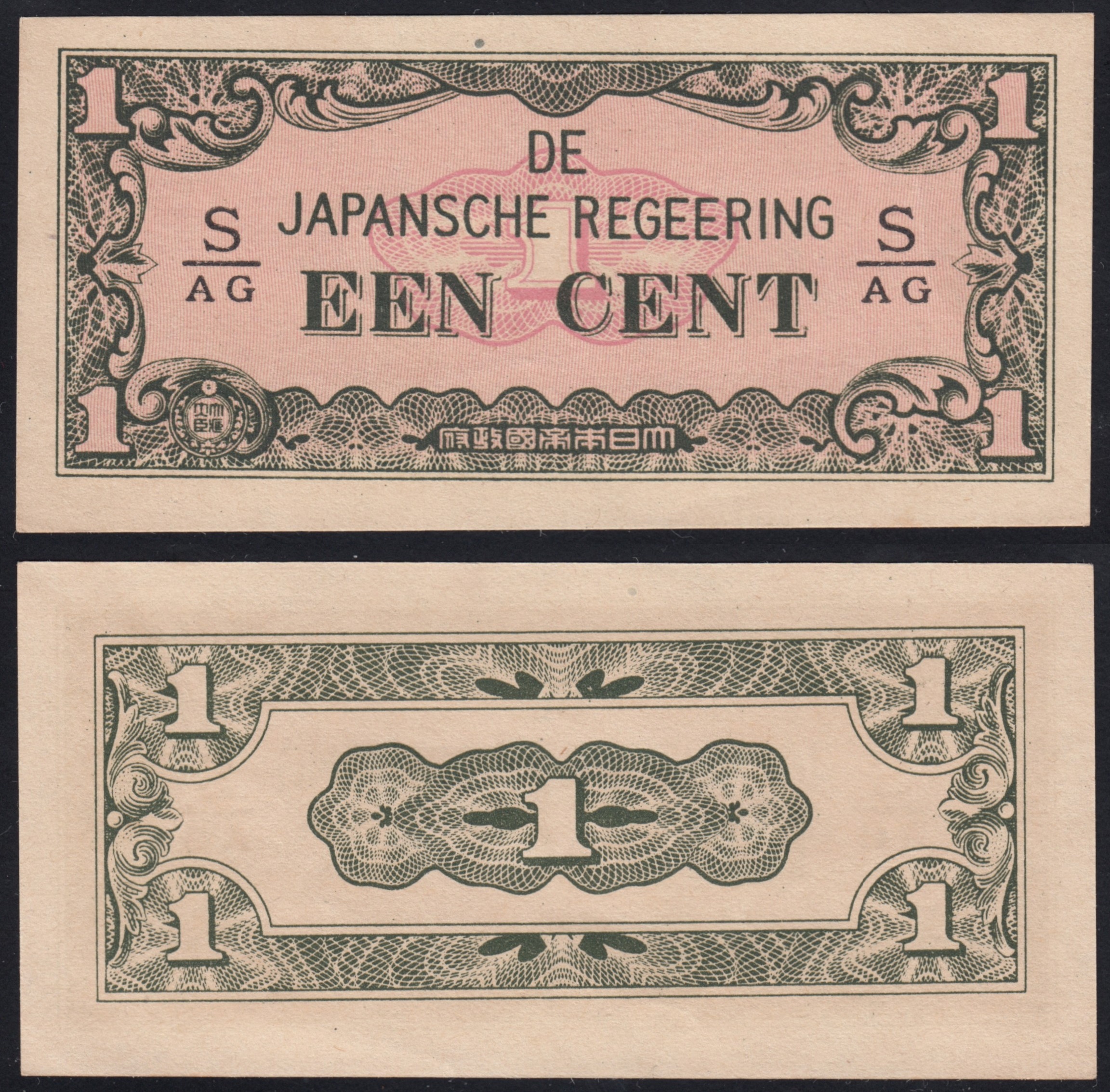 Банкнота (бона) достоинством 1 цент, выпущенная японским правительством для использования в Голландской Ост-Индии (ныне Индонезия) во время оккупации в 1942 году.