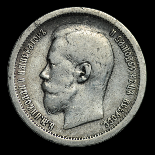 Прикоснитесь к истории и культуре Российской империи времён царя Николая II, купив красивую и крупную серебряную монету 50 копеек 1896 года!