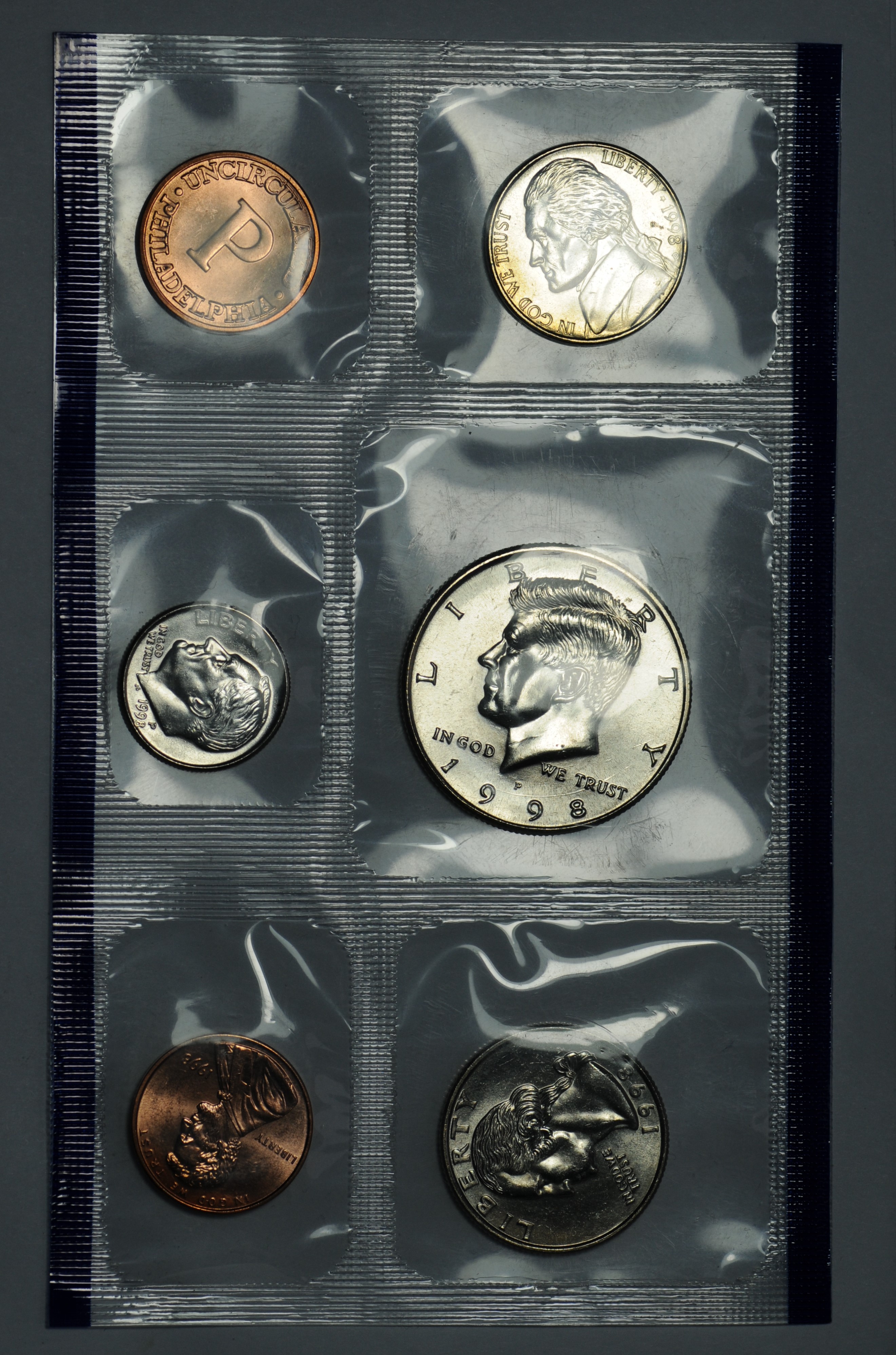 Набор 5 монет США + жетон 1998 г. (в запайке монетного двора)
