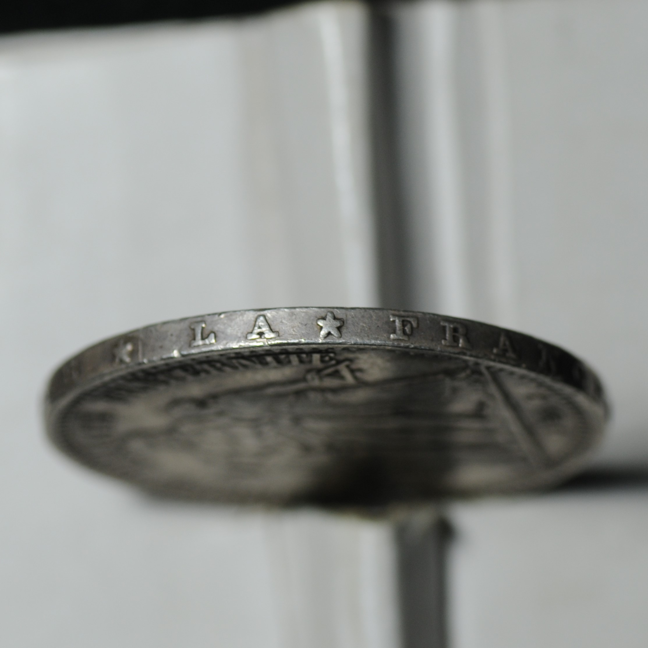 Старая крупная монета Франции 5 франков 1873 года "Геркулес". Отчеканена из серебра 900-й пробы на монетном дворе Парижа.